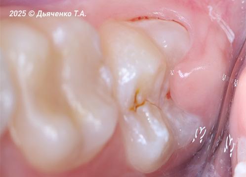 - неполностью прорезавшийся зуб с недостаточно выраженным экватором (рис. 4);