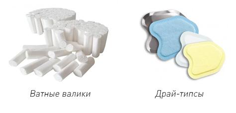 Драй-типсы представляют собой специальные впитывающие прокладки, которые располагаются на слизистой оболочке щек в области протока слюнных желез. Также могут использоваться дополнительные средства, такие как корды и зубная нить.